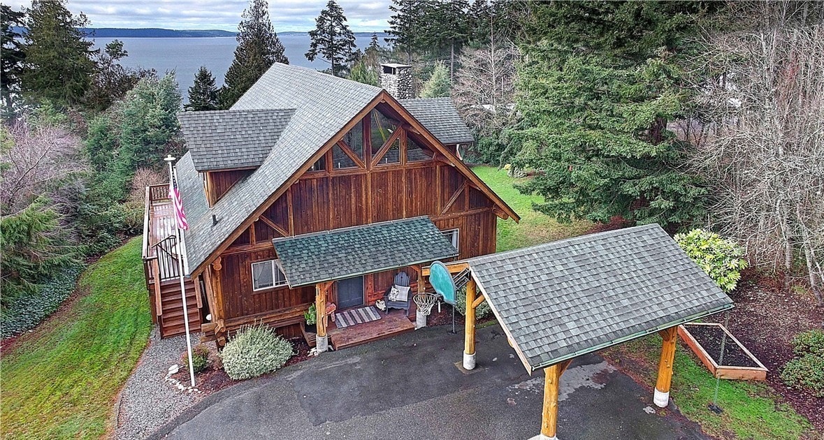 CamanoWatch the sunset from this gorgeous custom log home in the coveted Madrona Beach Area of Camano! Cozily decorated with soaring ceilings and wall-of-windows that overlook Saratoga Passage.